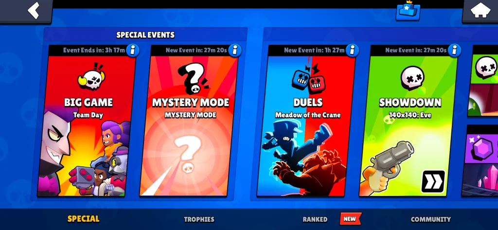 Un autre grand changement de Null’s Brawl v62.264 concerne la Trophy Road. Au lieu d’un parcours linéaire, la progression est désormais plus engageante. Les récompenses sont mieux pensées, les succès liés aux performances, et les joueurs débloquent des fonctionnalités spéciales en avançant.